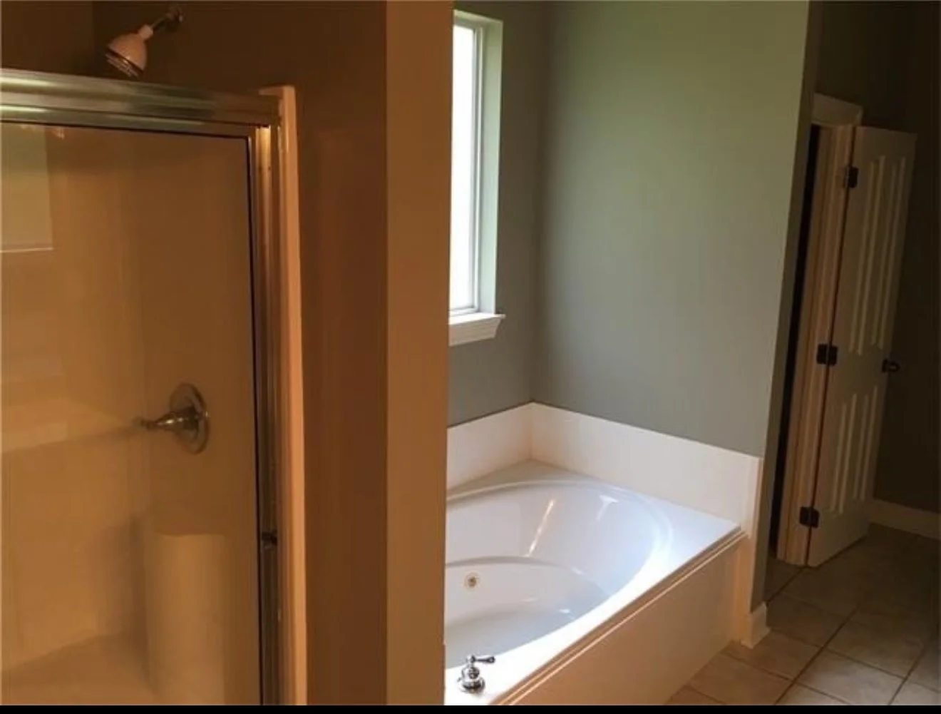 The primary suite is a spa-like escape with a soaking tub, enormous dual rainfall shower, custom vanities, and two custom closets.