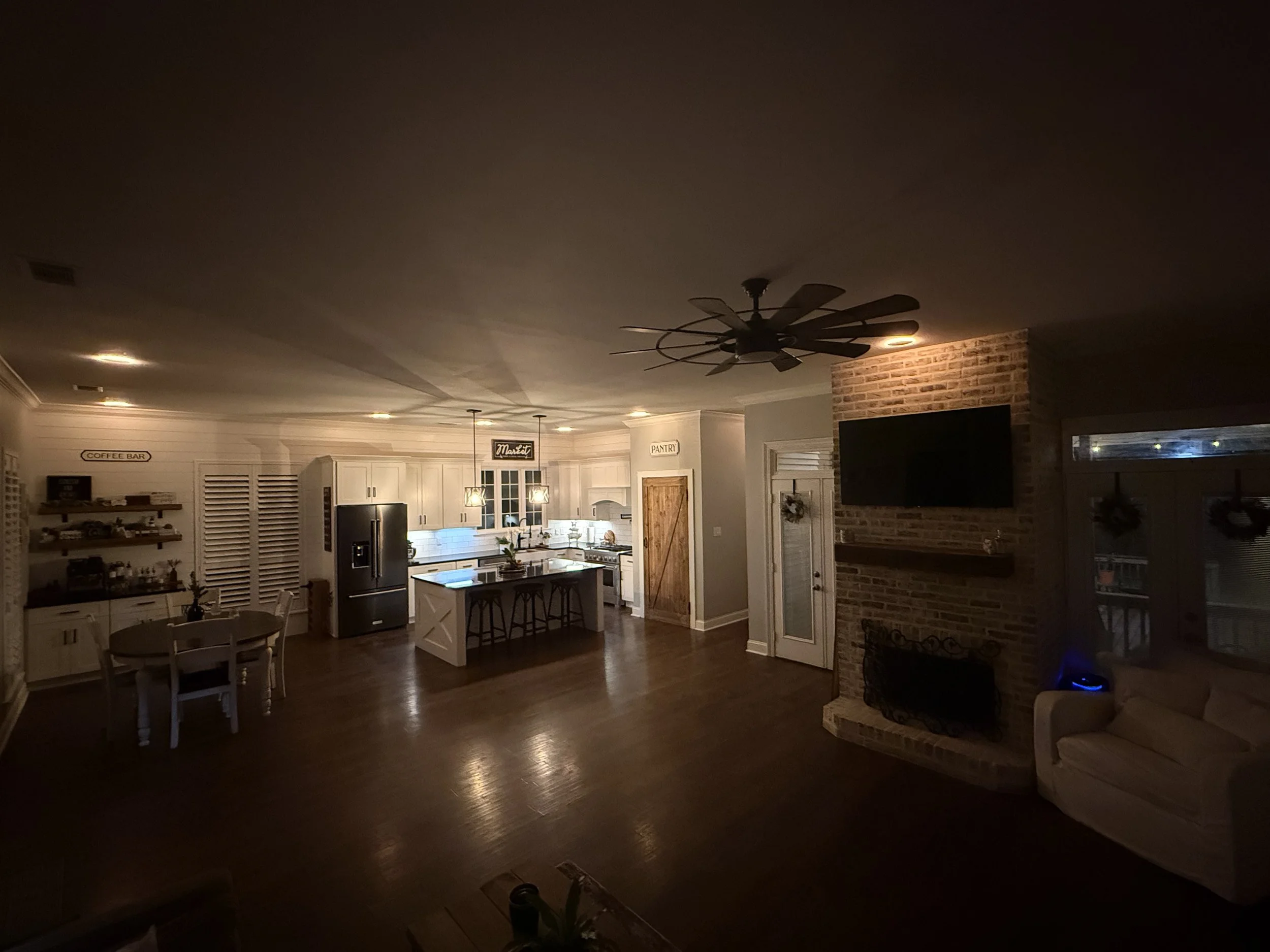 Inside, enjoy 10ft ceilings, plantation shutters, LVP flooring, crown molding, and a custom brick fireplace. The chef’s kitchen shines with 36” KitchenAid gas stove, black granite, custom shaker cabinets, mahogany shelving, a built-in coffee/whiskey bar, and a dream walk-in pantry.